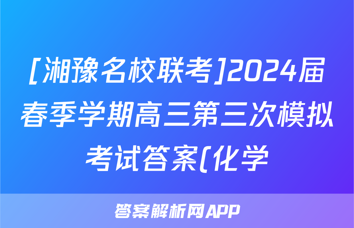 [湘豫名校联考]2024届春季学期高三第三次模拟考试答案(化学)正在持续更新,目前2024-2025英语周报答案网为大家整理了相关试题及答案,供大家查缺补漏,高效提升成绩。