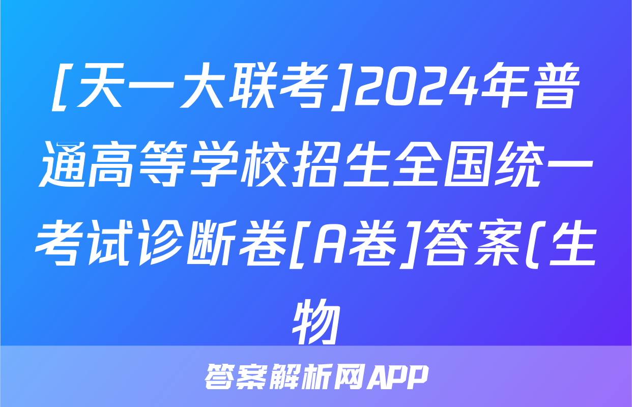 [天一大联考]2024年普通高等学校招生全国统一考试诊断卷[A卷]答案(生物)正在持续更新,目前2024-2025英语周报答案网为大家整理了相关试题及答案,供大家查缺补漏,高效提升成绩。
