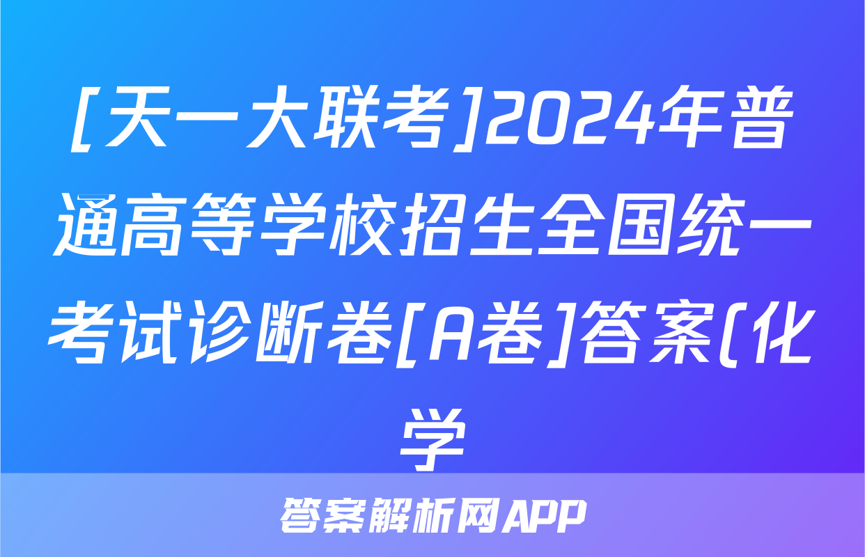 [天一大联考]2024年普通高等学校招生全国统一考试诊断卷[A卷]答案(化学)正在持续更新,目前2024-2025英语周报答案网为大家整理了相关试题及答案,供大家查缺补漏,高效提升成绩。