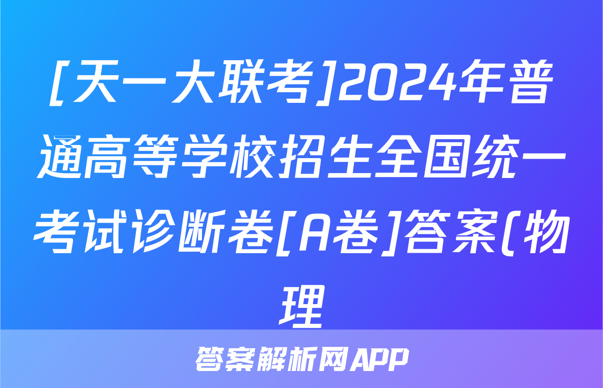 [天一大联考]2024年普通高等学校招生全国统一考试诊断卷[A卷]答案(物理)正在持续更新,目前2024-2025英语周报答案网为大家整理了相关试题及答案,供大家查缺补漏,高效提升成绩。