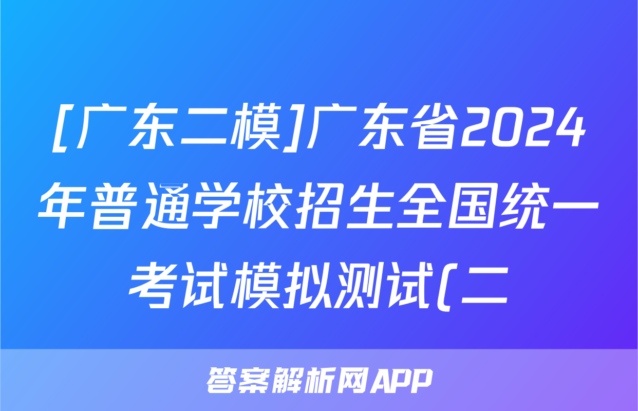 [广东二模]广东省2024年普通学校招生全国统一考试模拟测试(二)2试题(英语)正在持续更新,目前2024-2025英语周报答案网为大家整理了相关试题及答案,供大家查缺补漏,高效提升成绩。
