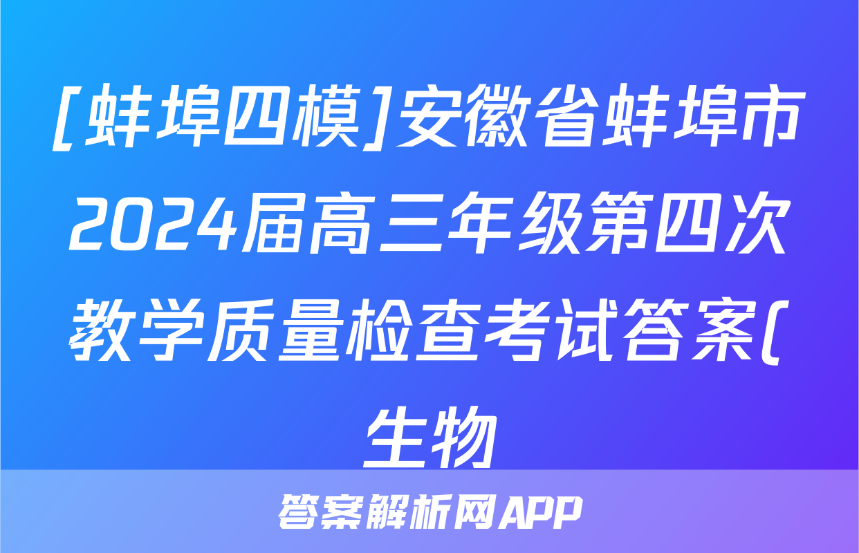 [蚌埠四模]安徽省蚌埠市2024届高三年级第四次教学质量检查考试答案(生物)正在持续更新,目前2024-2025英语周报答案网为大家整理了相关试题及答案,供大家查缺补漏,高效提升成绩。