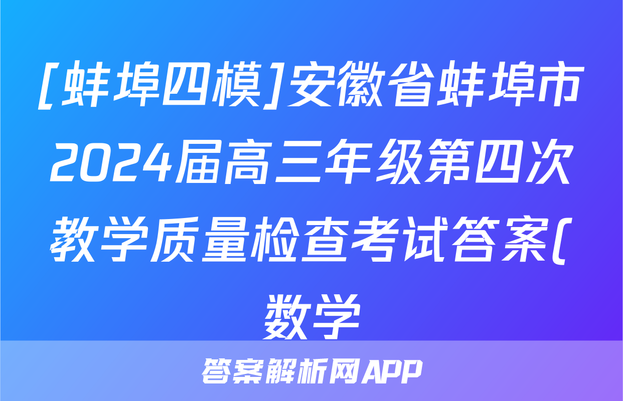 [蚌埠四模]安徽省蚌埠市2024届高三年级第四次教学质量检查考试答案(数学)正在持续更新,目前2024-2025英语周报答案网为大家整理了相关试题及答案,供大家查缺补漏,高效提升成绩。