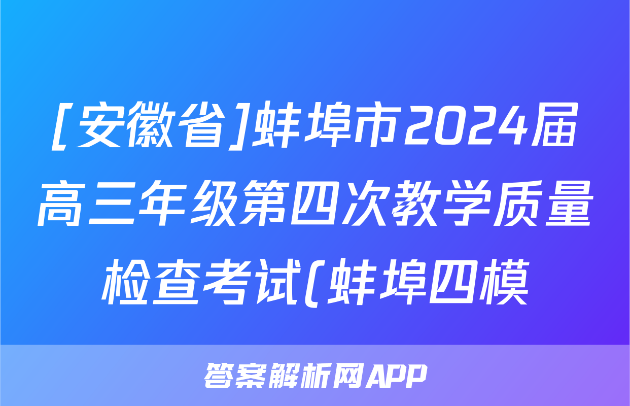 [安徽省]蚌埠市2024届高三年级第四次教学质量检查考试(蚌埠四模)答案(英语)正在持续更新,目前2024-2025英语周报答案网为大家整理了相关试题及答案,供大家查缺补漏,高效提升成绩。