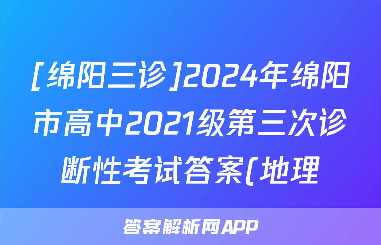 [绵阳三诊]2024年绵阳市高中2021级第三次诊断性考试答案(地理)正在持续更新,目前2024-2025英语周报答案网为大家整理了相关试题及答案,供大家查缺补漏,高效提升成绩。