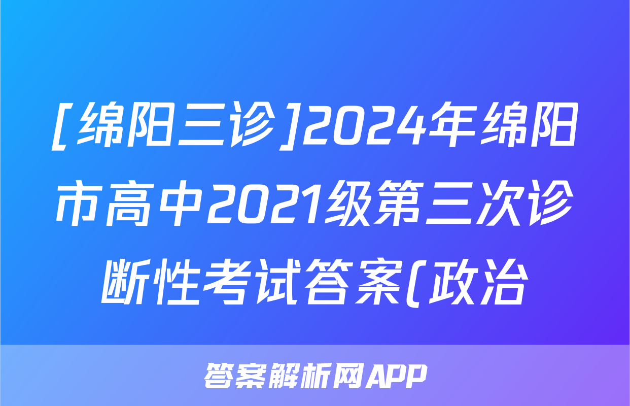 [绵阳三诊]2024年绵阳市高中2021级第三次诊断性考试答案(政治)正在持续更新,目前2024-2025英语周报答案网为大家整理了相关试题及答案,供大家查缺补漏,高效提升成绩。