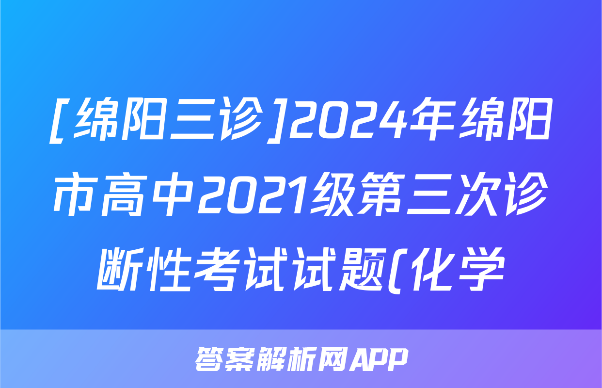 [绵阳三诊]2024年绵阳市高中2021级第三次诊断性考试试题(化学)正在持续更新,目前2024-2025英语周报答案网为大家整理了相关试题及答案,供大家查缺补漏,高效提升成绩。