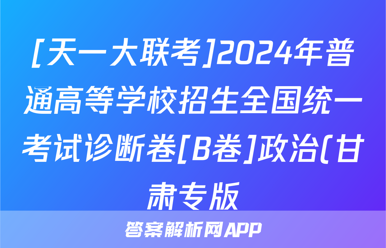 [天一大联考]2024年普通高等学校招生全国统一考试诊断卷[B卷]政治(甘肃专版)试题正在持续更新,目前2024-2025英语周报答案网为大家整理了相关试题及答案,供大家查缺补漏,高效提升成绩。