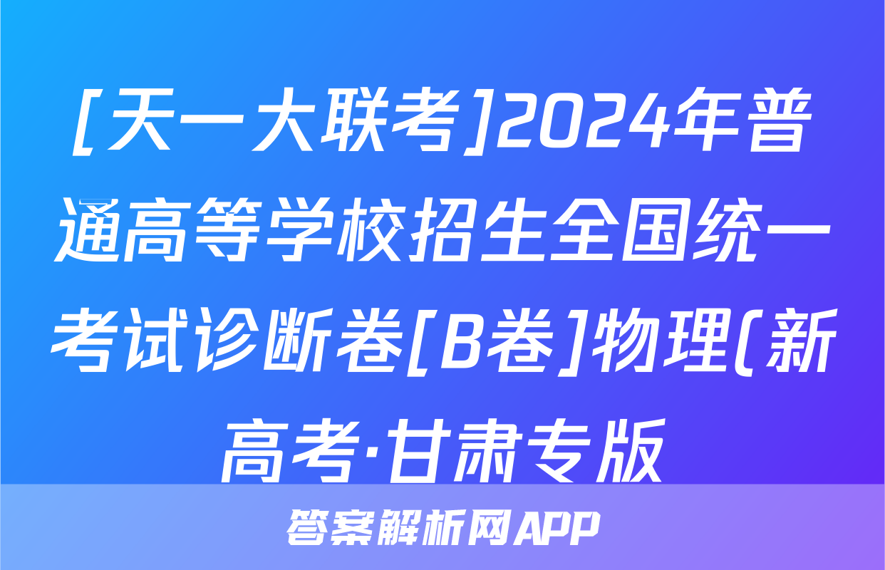 [天一大联考]2024年普通高等学校招生全国统一考试诊断卷[B卷]物理(新高考·甘肃专版)答案正在持续更新,目前2024-2025英语周报答案网为大家整理了相关试题及答案,供大家查缺补漏,高效提升成绩。