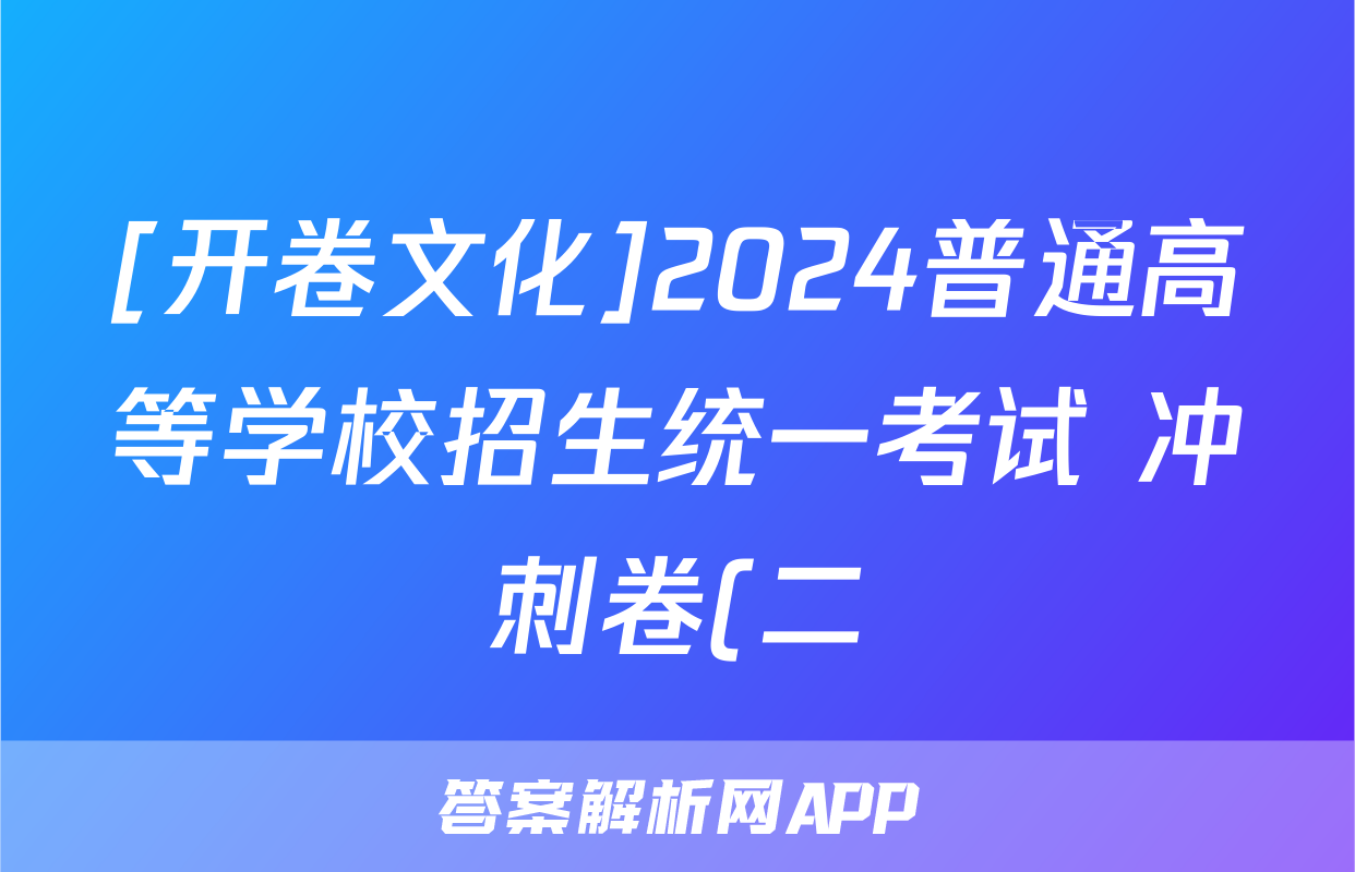 [开卷文化]2024普通高等学校招生统一考试 冲刺卷(二)2答案(政治)正在持续更新,目前2024-2025英语周报答案网为大家整理了相关试题及答案,供大家查缺补漏,高效提升成绩。