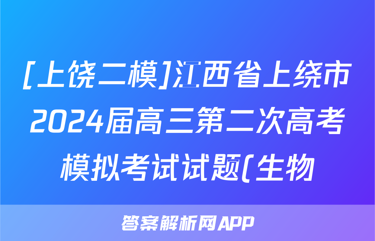 [上饶二模]江西省上绕市2024届高三第二次高考模拟考试试题(生物)正在持续更新,目前2024-2025英语周报答案网为大家整理了相关试题及答案,供大家查缺补漏,高效提升成绩。