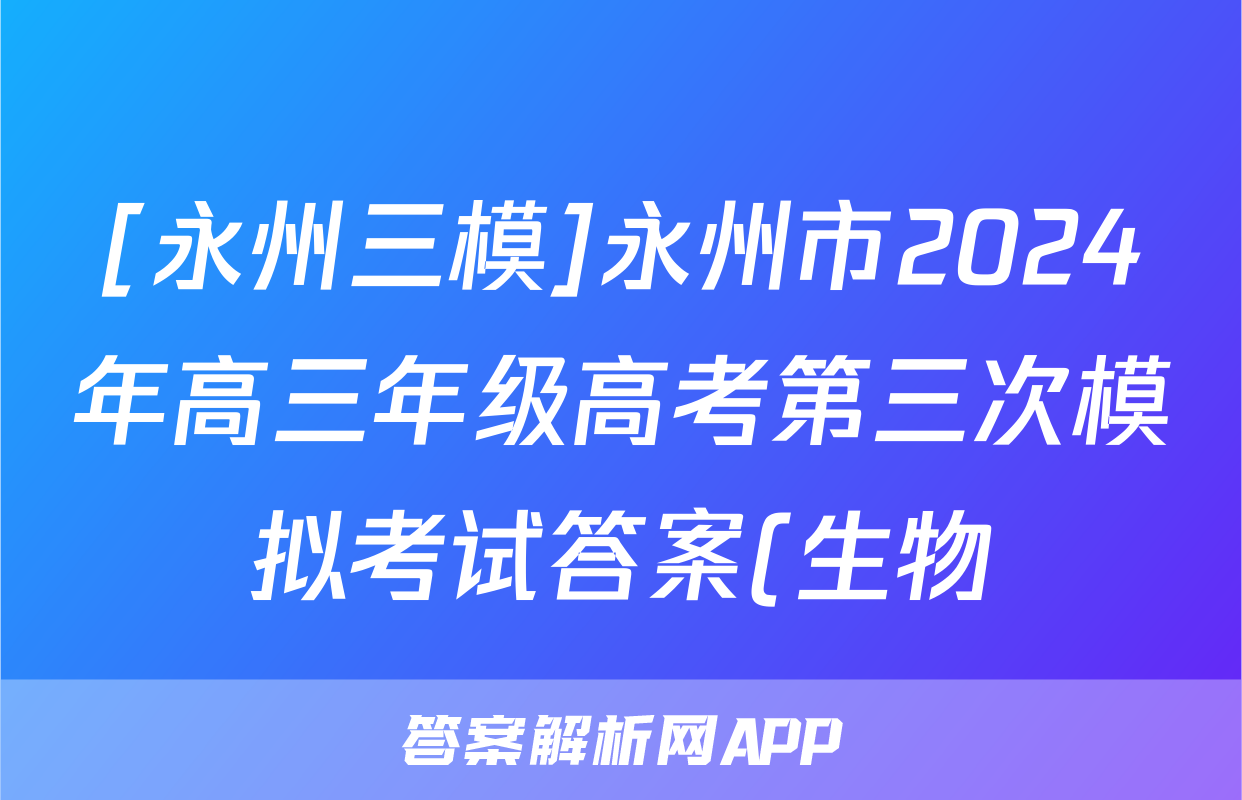 [永州三模]永州市2024年高三年级高考第三次模拟考试答案(生物)正在持续更新,目前2024-2025英语周报答案网为大家整理了相关试题及答案,供大家查缺补漏,高效提升成绩。