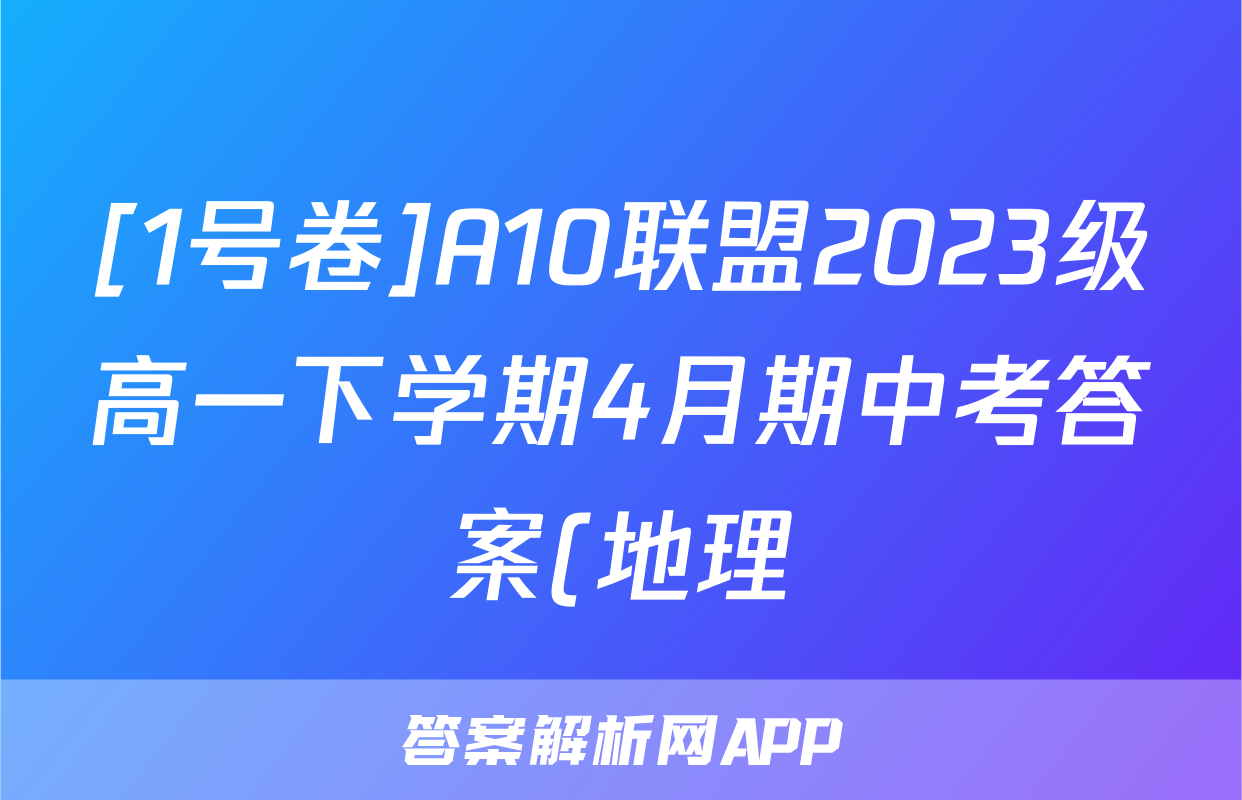 [1号卷]A10联盟2023级高一下学期4月期中考答案(地理)正在持续更新,目前2024-2025英语周报答案网为大家整理了相关试题及答案,供大家查缺补漏,高效提升成绩。