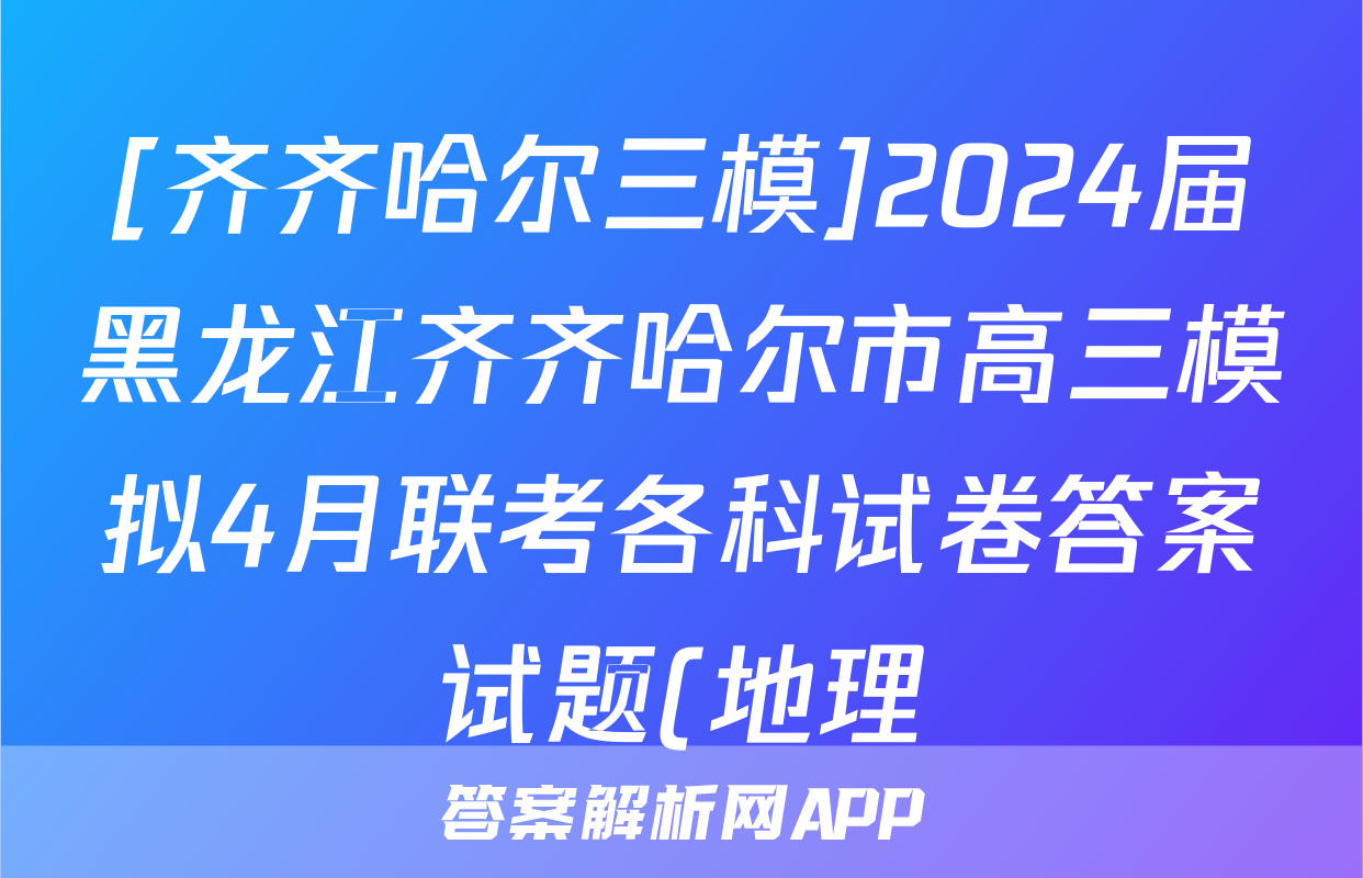 [齐齐哈尔三模]2024届黑龙江齐齐哈尔市高三模拟4月联考各科试卷答案试题(地理)正在持续更新,目前2024-2025英语周报答案网为大家整理了相关试题及答案,供大家查缺补漏,高效提升成绩。