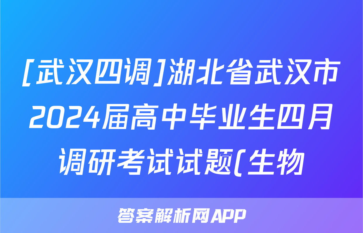 [武汉四调]湖北省武汉市2024届高中毕业生四月调研考试试题(生物)正在持续更新,目前2024-2025英语周报答案网为大家整理了相关试题及答案,供大家查缺补漏,高效提升成绩。