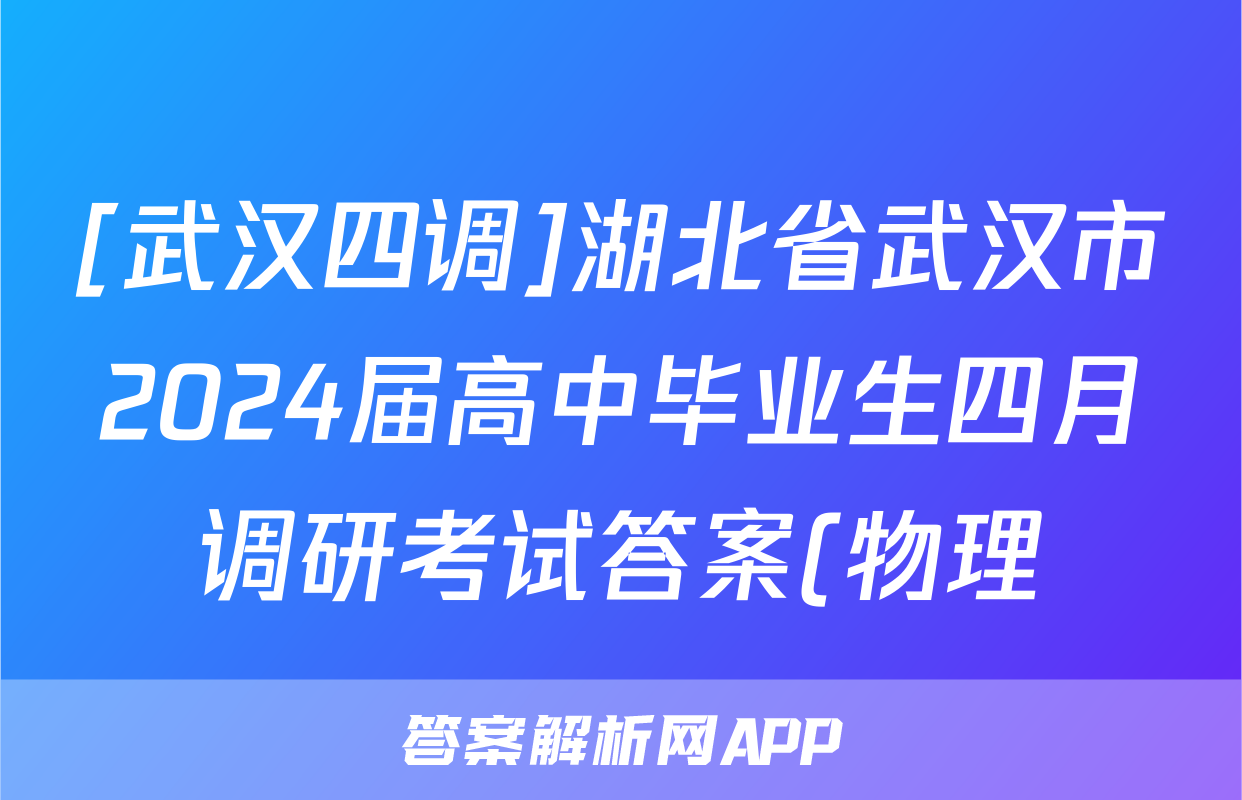 [武汉四调]湖北省武汉市2024届高中毕业生四月调研考试答案(物理)正在持续更新,目前2024-2025英语周报答案网为大家整理了相关试题及答案,供大家查缺补漏,高效提升成绩。