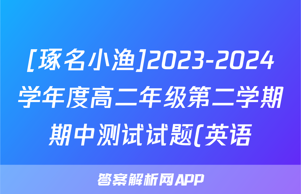 [琢名小渔]2023-2024学年度高二年级第二学期期中测试试题(英语)正在持续更新,目前2024-2025英语周报答案网为大家整理了相关试题及答案,供大家查缺补漏,高效提升成绩。