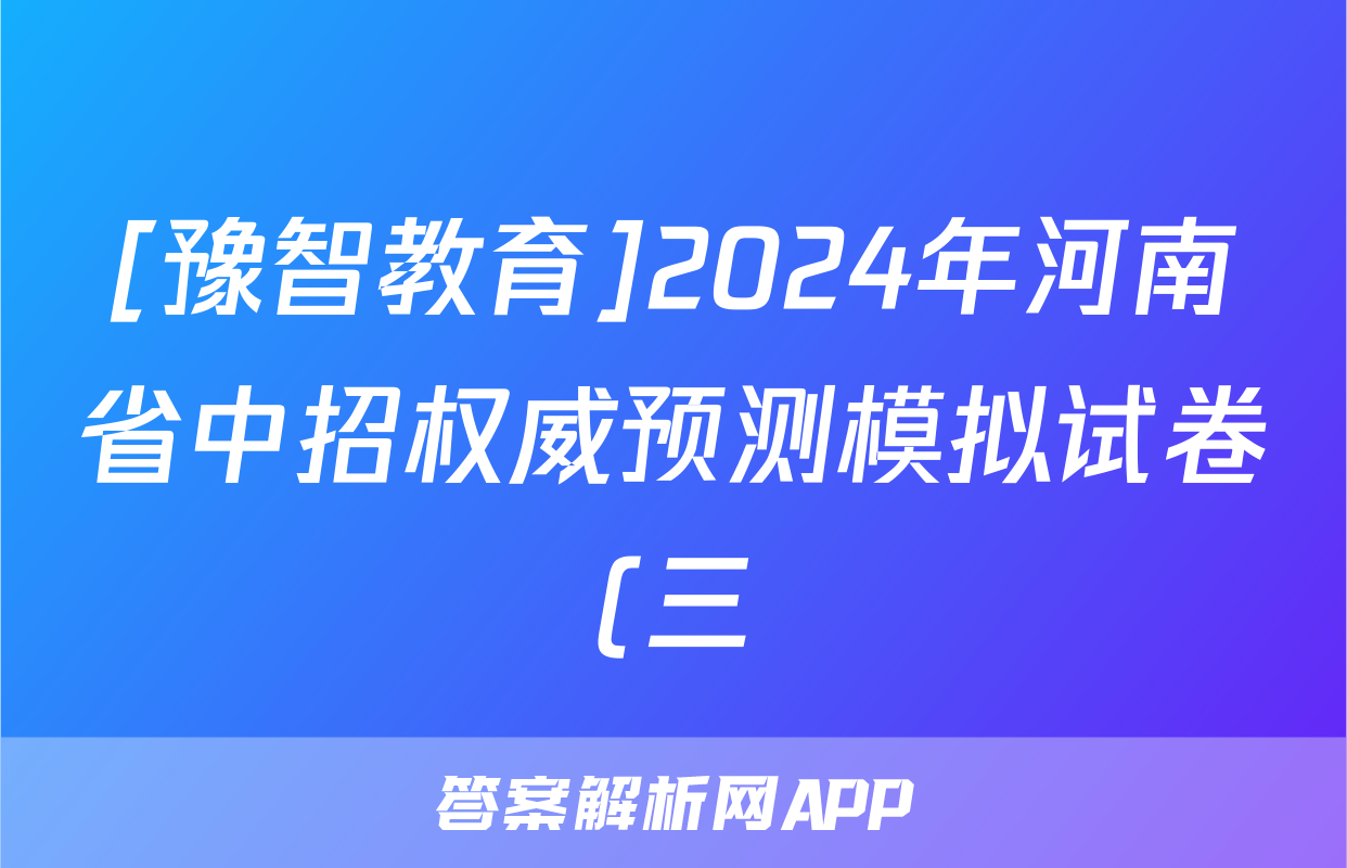 [豫智教育]2024年河南省中招权威预测模拟试卷(三)3化学答案正在持续更新,目前2024-2025英语周报答案网为大家整理了相关试题及答案,供大家查缺补漏,高效提升成绩。
