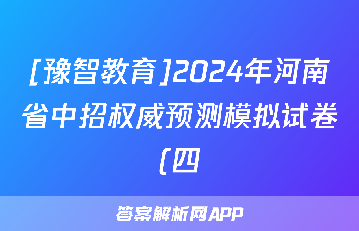 [豫智教育]2024年河南省中招权威预测模拟试卷(四)4化学试题正在持续更新,目前2024-2025英语周报答案网为大家整理了相关试题及答案,供大家查缺补漏,高效提升成绩。