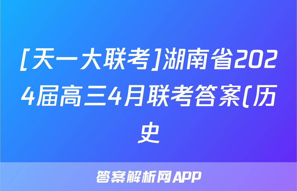 [天一大联考]湖南省2024届高三4月联考答案(历史)正在持续更新,目前2024-2025英语周报答案网为大家整理了相关试题及答案,供大家查缺补漏,高效提升成绩。