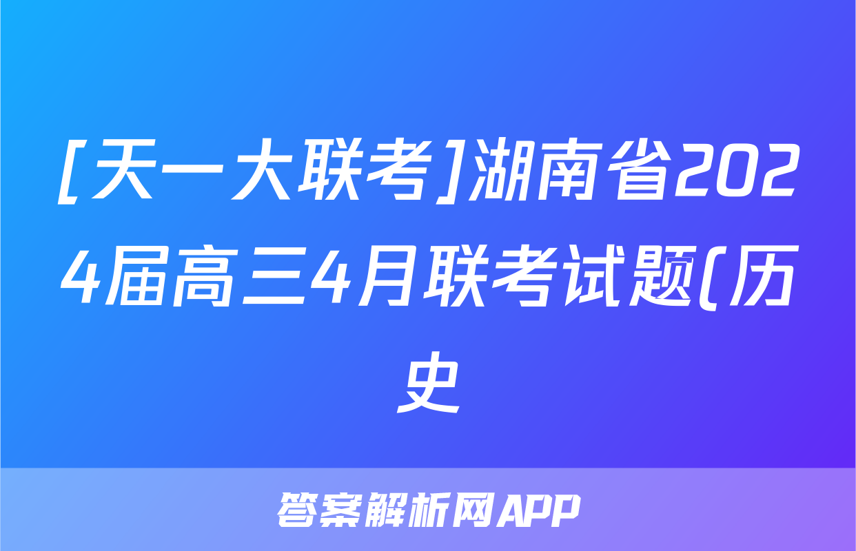 [天一大联考]湖南省2024届高三4月联考试题(历史)正在持续更新,目前2024-2025英语周报答案网为大家整理了相关试题及答案,供大家查缺补漏,高效提升成绩。