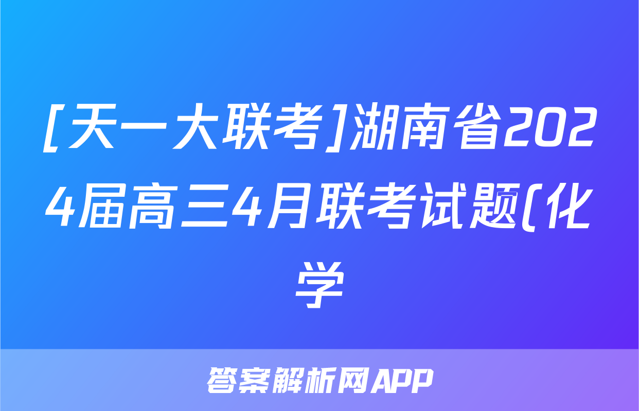 [天一大联考]湖南省2024届高三4月联考试题(化学)正在持续更新,目前2024-2025英语周报答案网为大家整理了相关试题及答案,供大家查缺补漏,高效提升成绩。