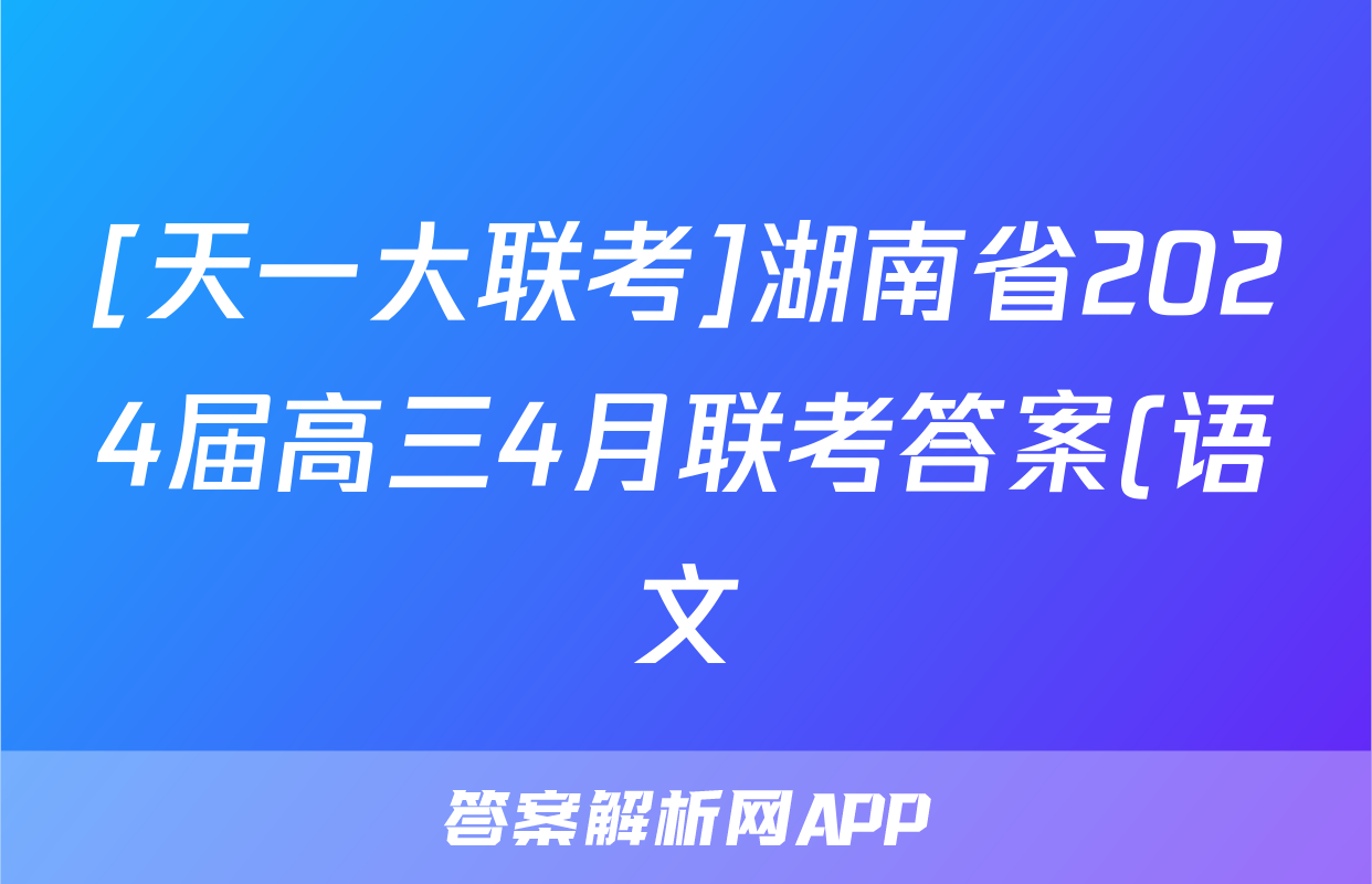[天一大联考]湖南省2024届高三4月联考答案(语文)正在持续更新,目前2024-2025英语周报答案网为大家整理了相关试题及答案,供大家查缺补漏,高效提升成绩。