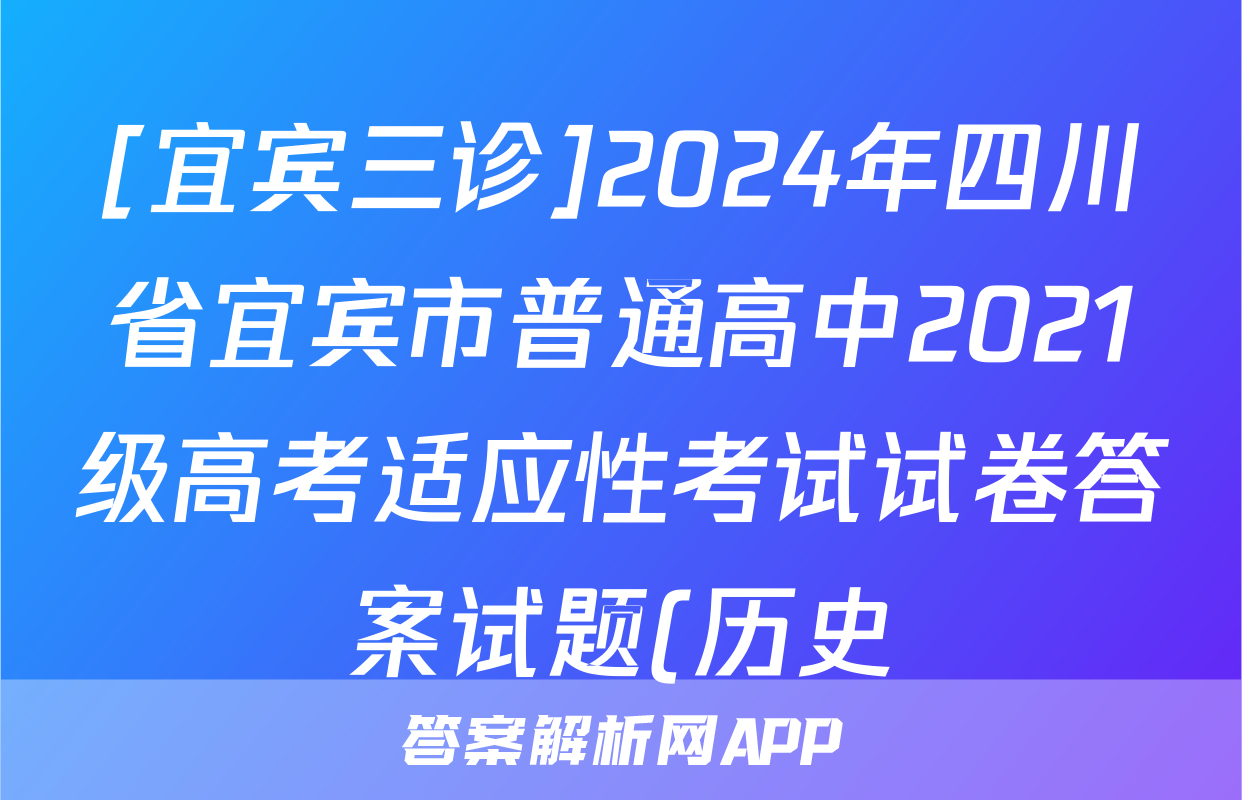 2、[宜宾三诊]2024年四川省宜宾市普通高中2021级高考适应性考试试卷答案答案(历史)