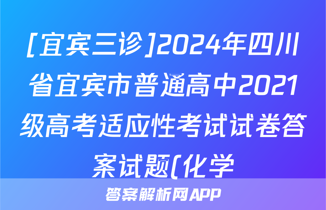 [宜宾三诊]2024年四川省宜宾市普通高中2021级高考适应性考试试卷答案试题(化学)正在持续更新,目前2024-2025英语周报答案网为大家整理了相关试题及答案,供大家查缺补漏,高效提升成绩。