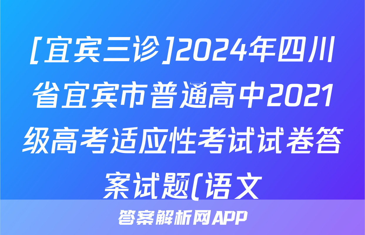 [宜宾三诊]2024年四川省宜宾市普通高中2021级高考适应性考试试卷答案试题(语文)正在持续更新,目前2024-2025英语周报答案网为大家整理了相关试题及答案,供大家查缺补漏,高效提升成绩。
