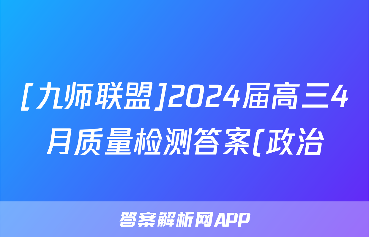 [九师联盟]2024届高三4月质量检测答案(政治)正在持续更新,目前2024-2025英语周报答案网为大家整理了相关试题及答案,供大家查缺补漏,高效提升成绩。