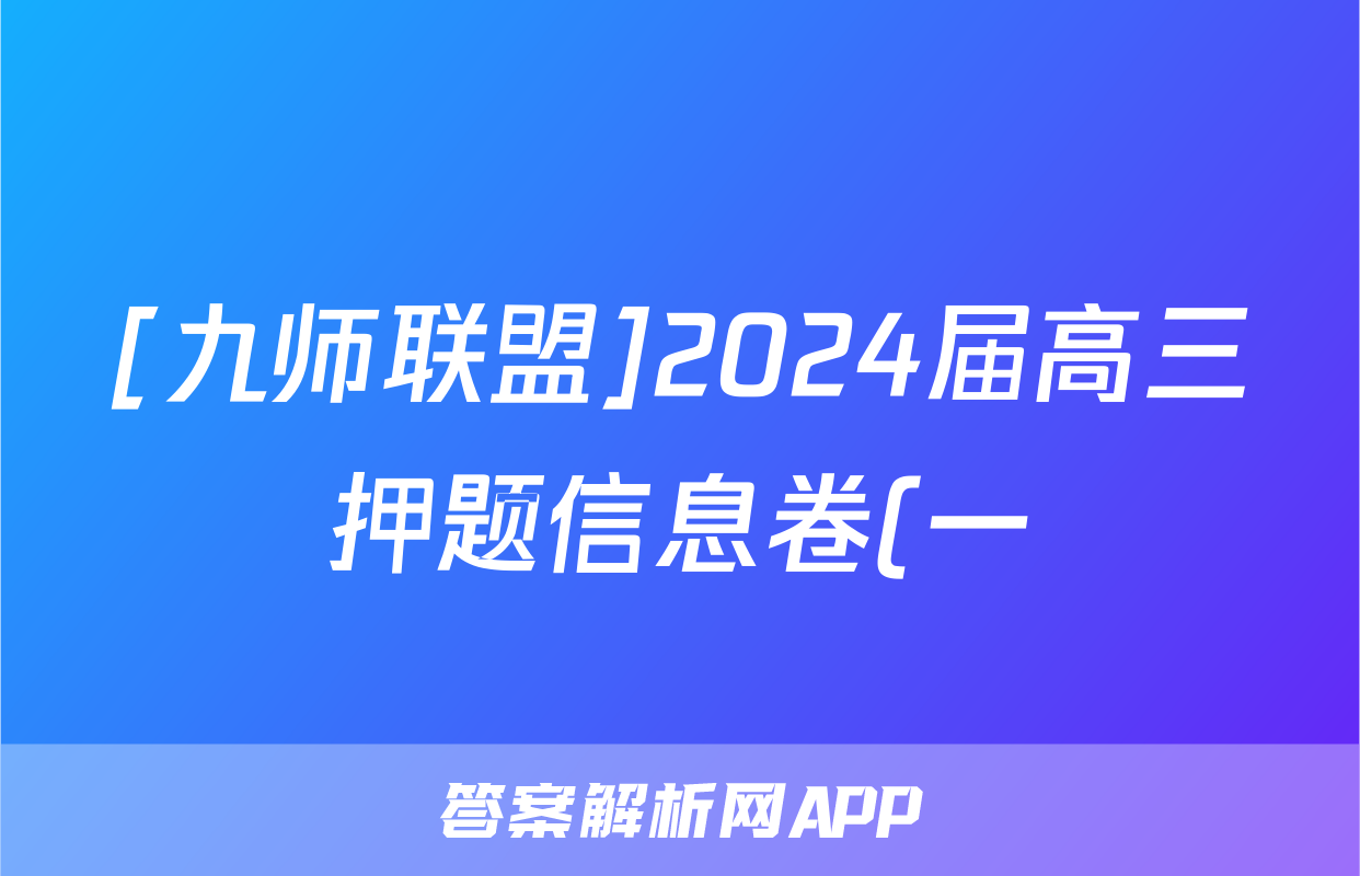 [九师联盟]2024届高三押题信息卷(一)1试题(英语)正在持续更新,目前2024-2025英语周报答案网为大家整理了相关试题及答案,供大家查缺补漏,高效提升成绩。