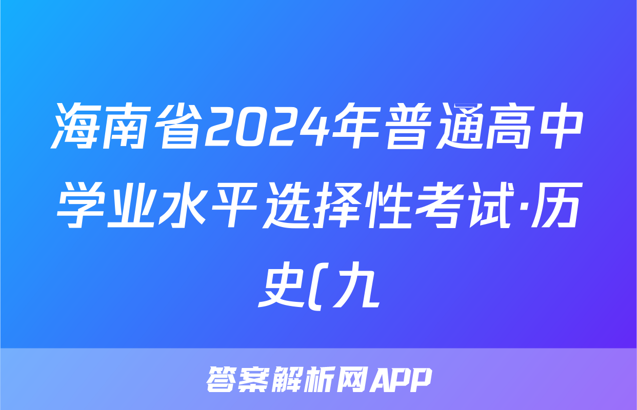 海南省2024年普通高中学业水平选择性考试·历史(九)9[24·(新高考)ZX·MNJ·历史·HAIN]答案正在持续更新,目前2024-2025英语周报答案网为大家整理了相关试题及答案,供大家查缺补漏,高效提升成绩。