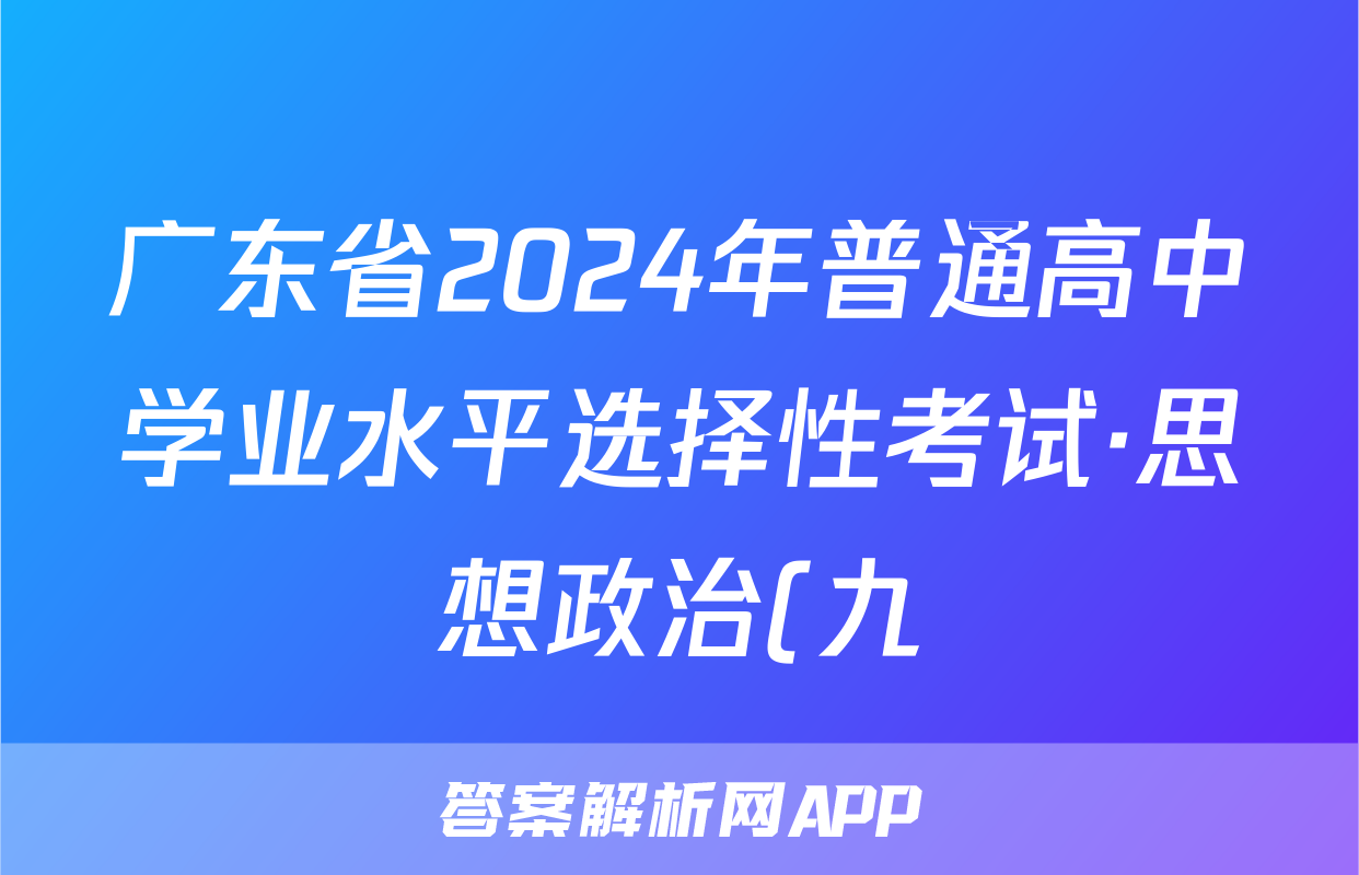 广东省2024年普通高中学业水平选择性考试·思想政治(九)9[24·(新高考)ZX·MNJ·思想政治·G DONG]试题正在持续更新,目前2024-2025英语周报答案网为大家整理了相关试题及答案,供大家查缺补漏,高效提升成绩。