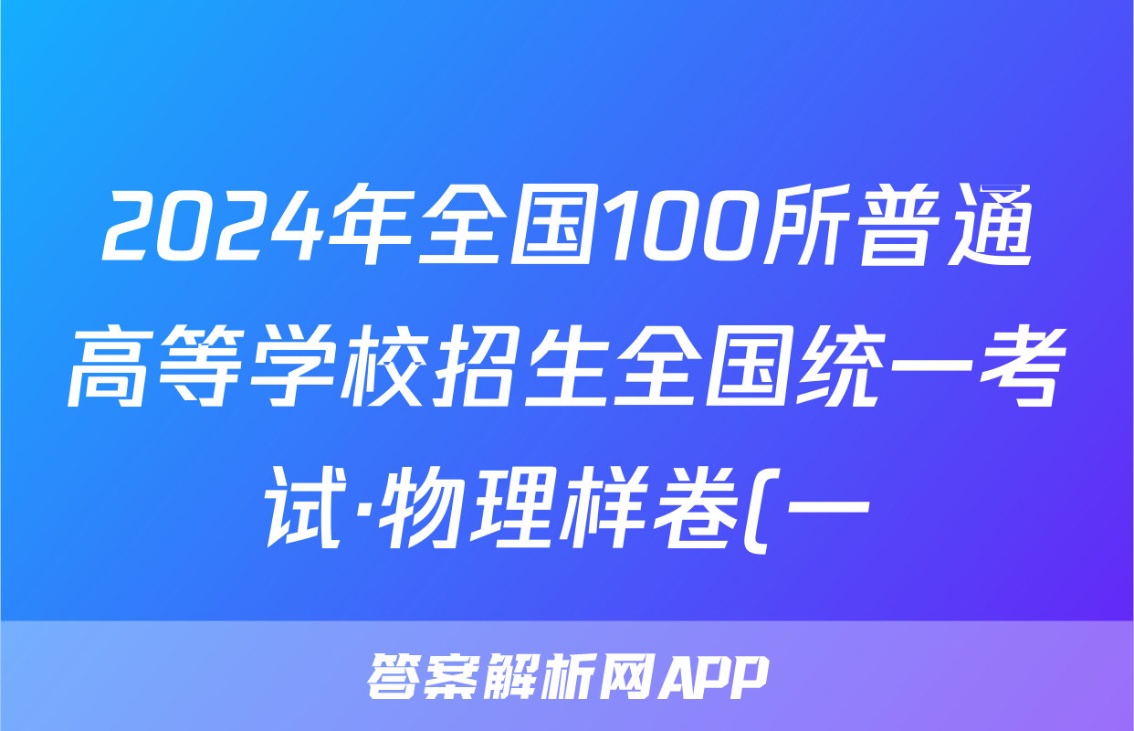 2024年全国100所普通高等学校招生全国统一考试·物理样卷(一)1[24·(新高考)高考样卷·物理·Y]答案正在持续更新,目前2024-2025英语周报答案网为大家整理了相关试题及答案,供大家查缺补漏,高效提升成绩。