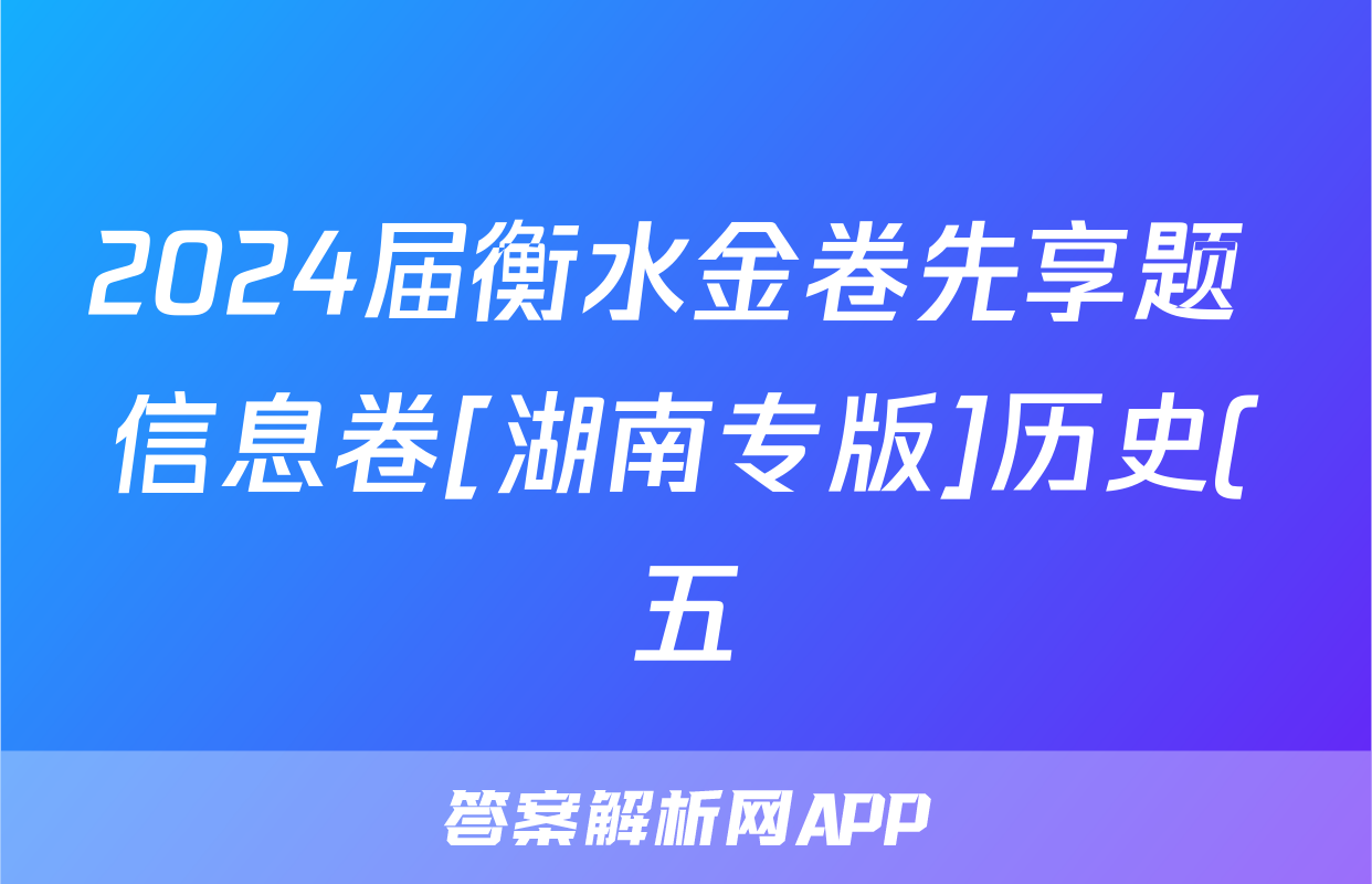 2024届衡水金卷先享题 信息卷[湖南专版]历史(五)5答案正在持续更新,目前2024-2025英语周报答案网为大家整理了相关试题及答案,供大家查缺补漏,高效提升成绩。