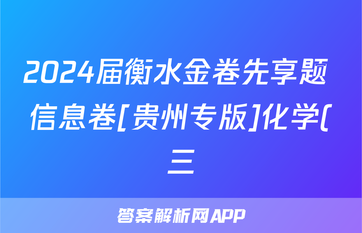 2024届衡水金卷先享题 信息卷[贵州专版]化学(三)3试题正在持续更新,目前2024-2025英语周报答案网为大家整理了相关试题及答案,供大家查缺补漏,高效提升成绩。