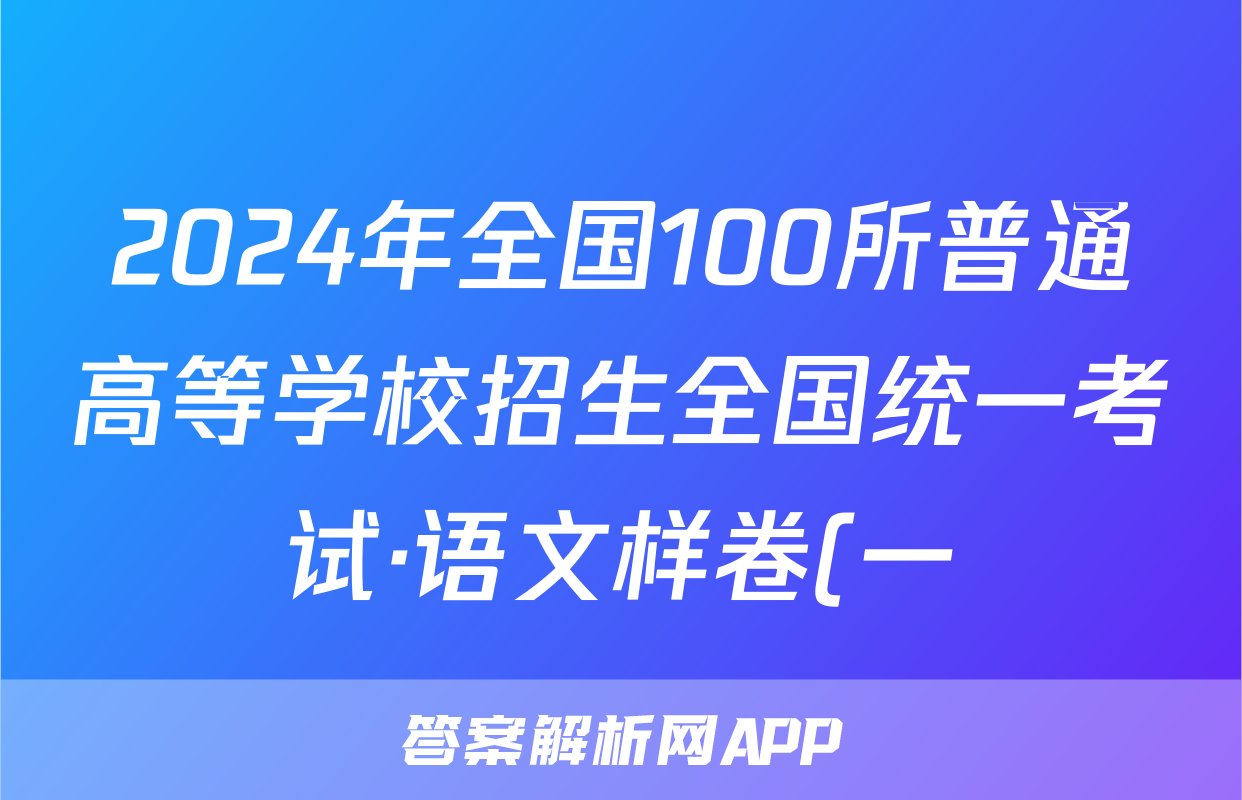 2024年全国100所普通高等学校招生全国统一考试·语文样卷(一)1[24·(新高考)高考样卷·语文·Y]答案正在持续更新,目前2024-2025英语周报答案网为大家整理了相关试题及答案,供大家查缺补漏,高效提升成绩。