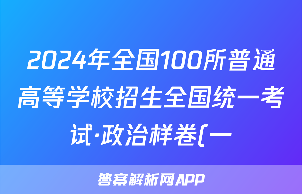 2024年全国100所普通高等学校招生全国统一考试·政治样卷(一)1[24·(新高考)高考样卷·政治·Y]试题正在持续更新,目前2024-2025英语周报答案网为大家整理了相关试题及答案,供大家查缺补漏,高效提升成绩。