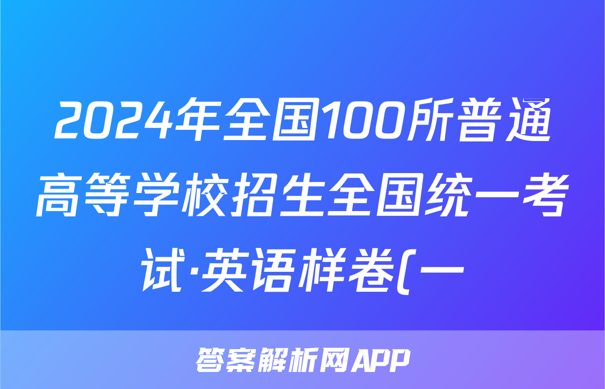 2024年全国100所普通高等学校招生全国统一考试·英语样卷(一)1[24·(新高考)高考样卷·英语·Y]试题正在持续更新,目前2024-2025英语周报答案网为大家整理了相关试题及答案,供大家查缺补漏,高效提升成绩。