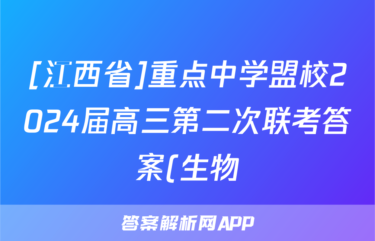 [江西省]重点中学盟校2024届高三第二次联考答案(生物)正在持续更新,目前2024-2025英语周报答案网为大家整理了相关试题及答案,供大家查缺补漏,高效提升成绩。