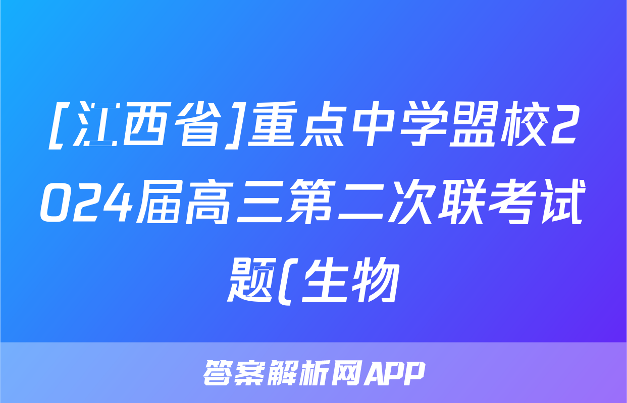 [江西省]重点中学盟校2024届高三第二次联考试题(生物)正在持续更新,目前2024-2025英语周报答案网为大家整理了相关试题及答案,供大家查缺补漏,高效提升成绩。