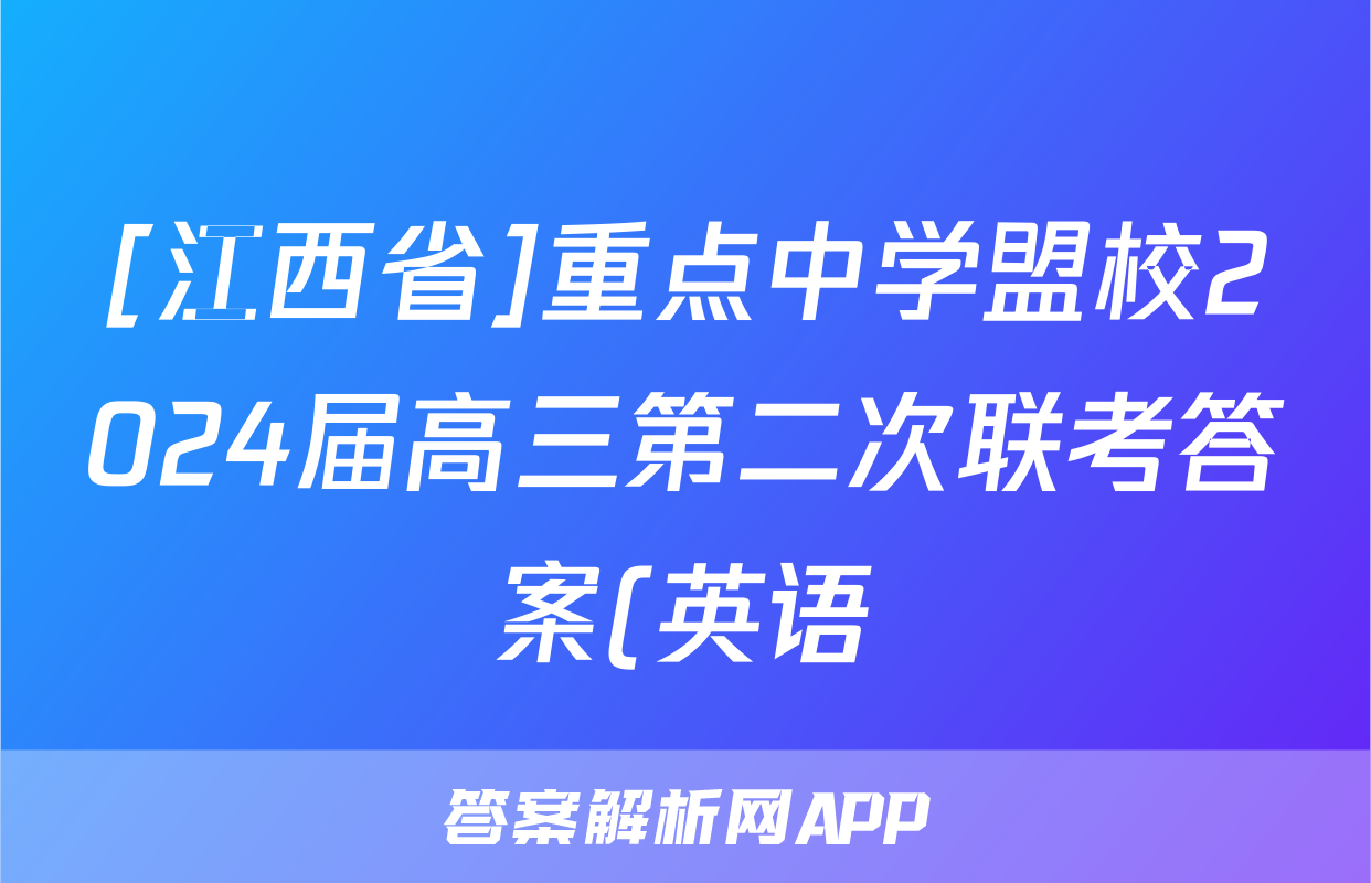 [江西省]重点中学盟校2024届高三第二次联考答案(英语)正在持续更新,目前2024-2025英语周报答案网为大家整理了相关试题及答案,供大家查缺补漏,高效提升成绩。