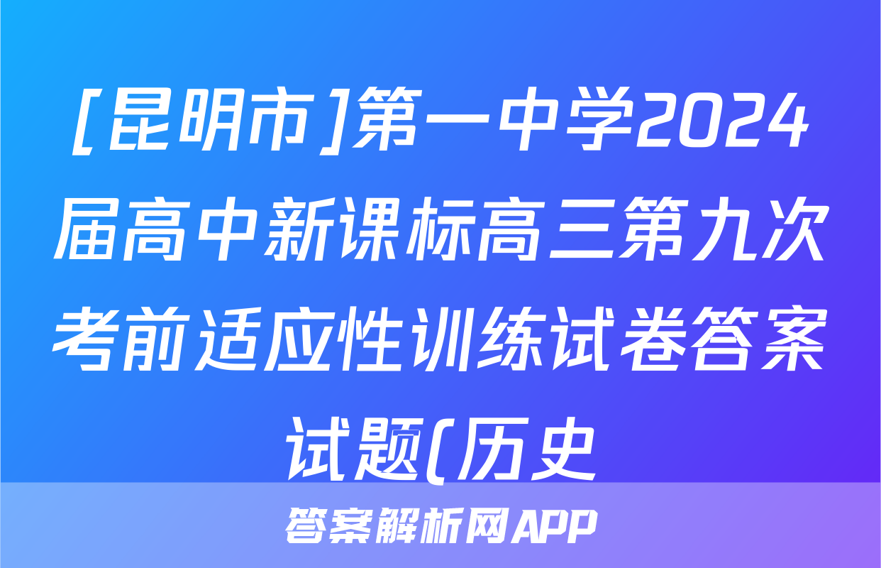 1、[昆明市]第一中学2024届高中新课标高三第九次考前适应性训练试卷答案答案(历史)