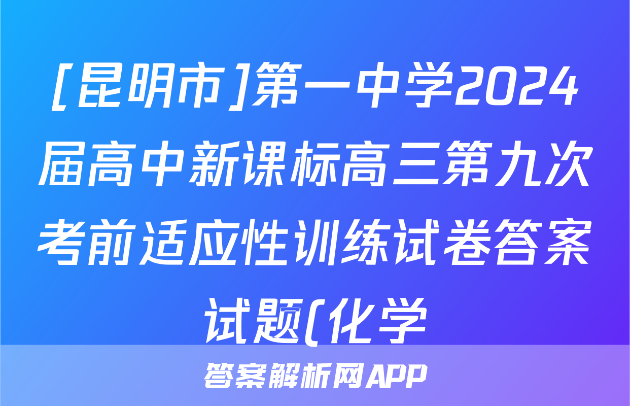 [昆明市]第一中学2024届高中新课标高三第九次考前适应性训练试卷答案试题(化学)正在持续更新,目前2024-2025英语周报答案网为大家整理了相关试题及答案,供大家查缺补漏,高效提升成绩。