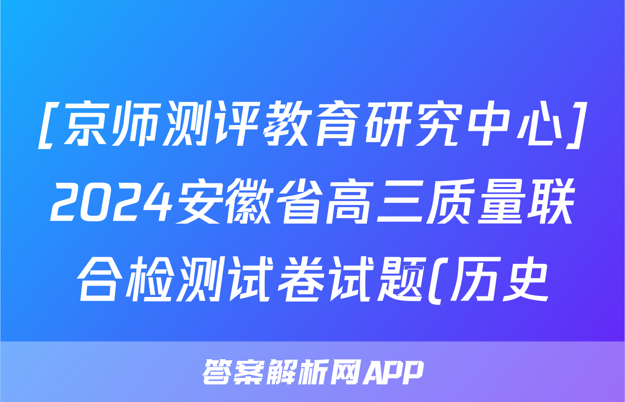 [京师测评教育研究中心]2024安徽省高三质量联合检测试卷试题(历史)正在持续更新,目前2024-2025英语周报答案网为大家整理了相关试题及答案,供大家查缺补漏,高效提升成绩。