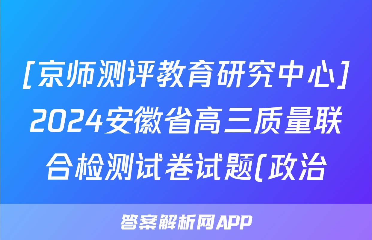 [京师测评教育研究中心]2024安徽省高三质量联合检测试卷试题(政治)正在持续更新,目前2024-2025英语周报答案网为大家整理了相关试题及答案,供大家查缺补漏,高效提升成绩。