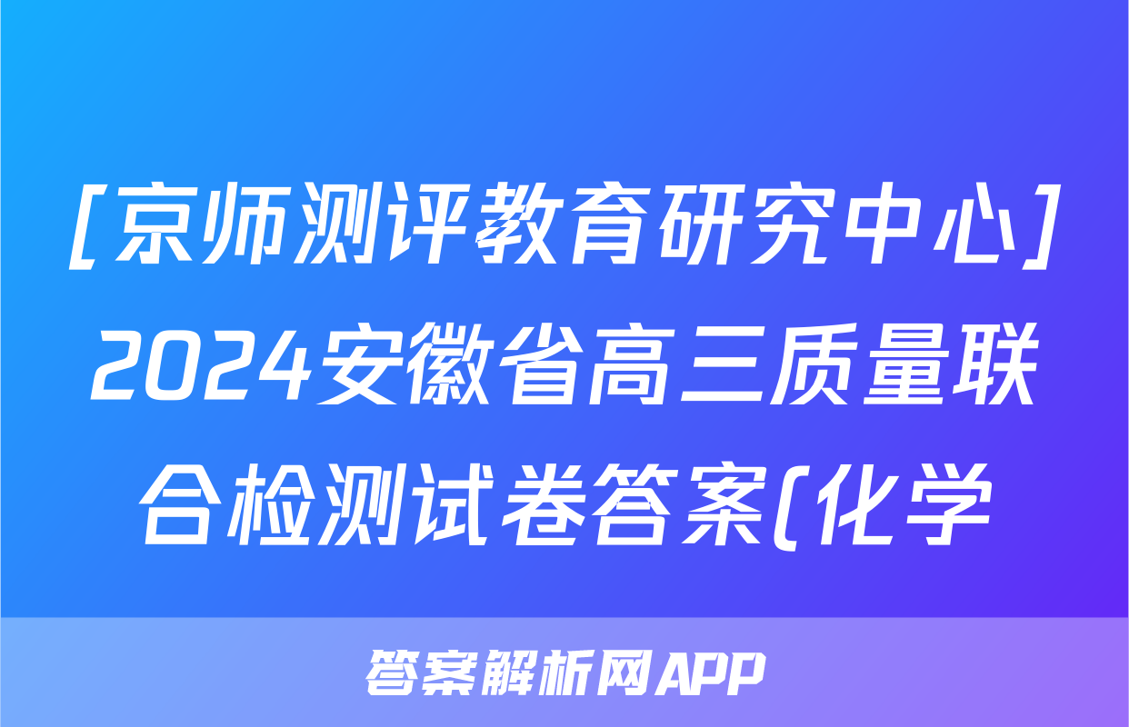 [京师测评教育研究中心]2024安徽省高三质量联合检测试卷答案(化学)正在持续更新,目前2024-2025英语周报答案网为大家整理了相关试题及答案,供大家查缺补漏,高效提升成绩。