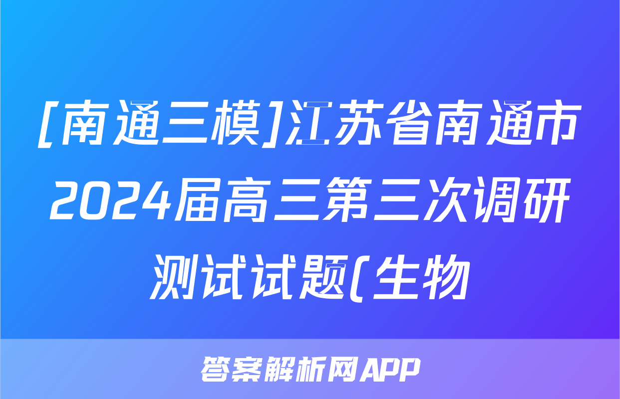 [南通三模]江苏省南通市2024届高三第三次调研测试试题(生物)正在持续更新,目前2024-2025英语周报答案网为大家整理了相关试题及答案,供大家查缺补漏,高效提升成绩。