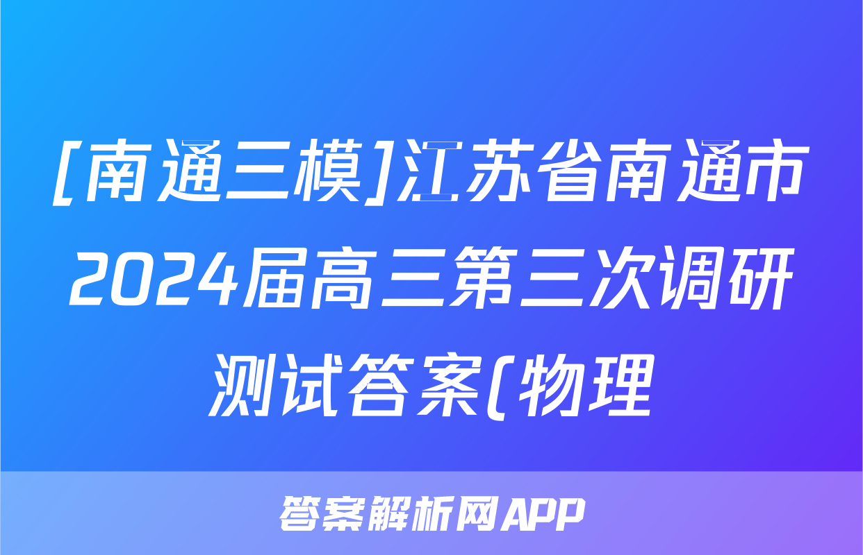 [南通三模]江苏省南通市2024届高三第三次调研测试答案(物理)正在持续更新,目前2024-2025英语周报答案网为大家整理了相关试题及答案,供大家查缺补漏,高效提升成绩。